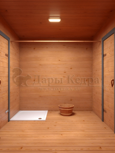 Создаст приятную атмосферу с приглушённым светом, а также визуально расширит пространство парной.
