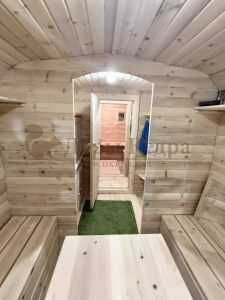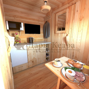 При обустройстве кемпинг-домов и габаритных бань (эксплуатация в качестве летнего домика) обратите внимание на шкаф, он точно вам пригодится для размещения вещей. Внутри - полки и штанга для аккуратного размещения одежды. Высота - 1,8 м, ширина - 0,9 м, глубина - 0,45 м.