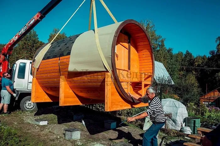 - Доставка бани должна быть четко регламентирована и согласованы все детали проезда с перевозчиком. Про особенности погрузки и разгрузки читайте в статьях: "Баня-бочка с доставкой на дом!" и "Доставка мобильных бань".