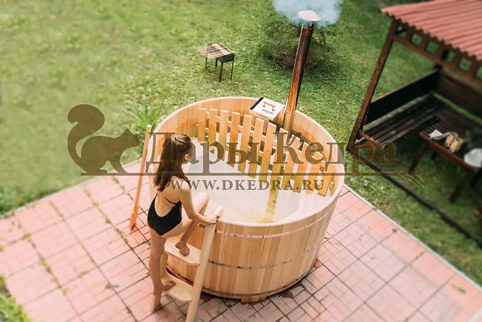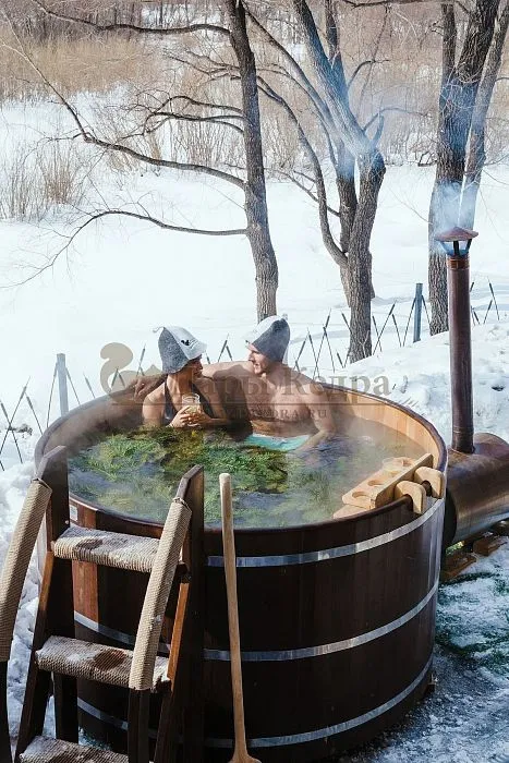 • Первое, что нужно отметить, - это возможность принятия банных процедур на свежем воздухе круглый год.
