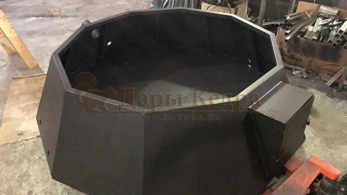 Банный чан из нержавеющей стали Ø-2350 на подставке с приварной печью с водяной рубашкой